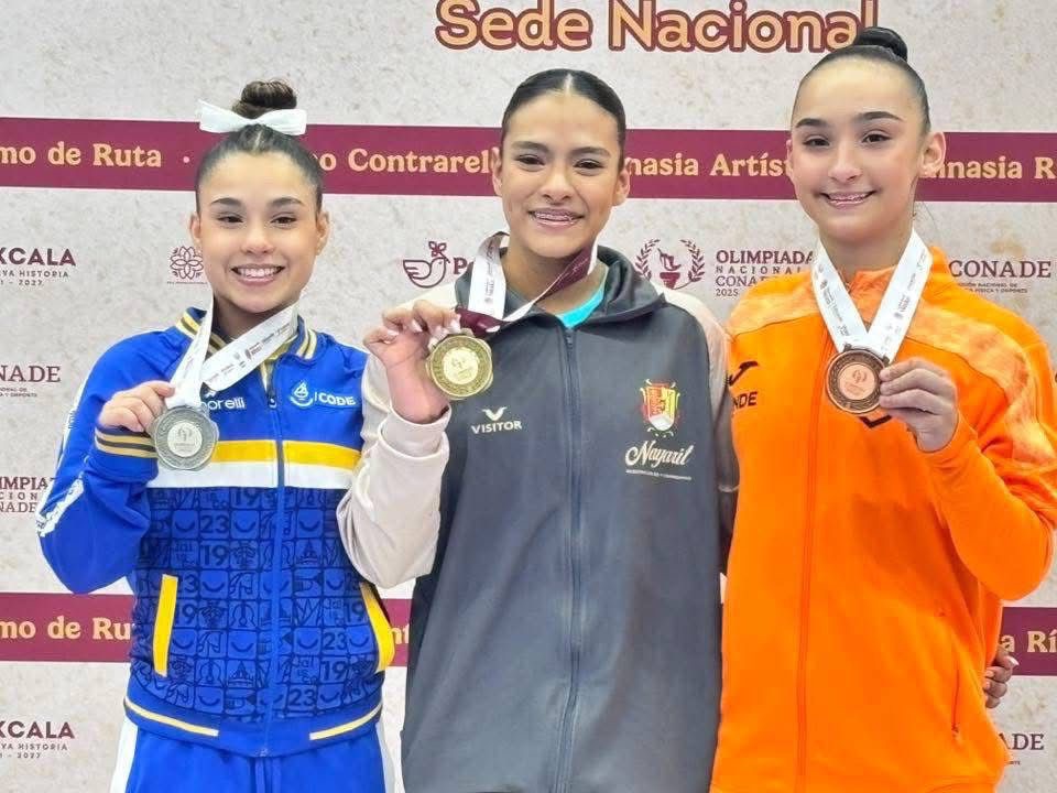 El gobierno del estado de Nayarit felicita a la joven gimnasta nayarita Julieta Bizarrón, quien obtuvo la medalla de oro en la modalidad All Around de gimnasia artística, durante su participación en la Olimpiada Nacional CONADE 2025.